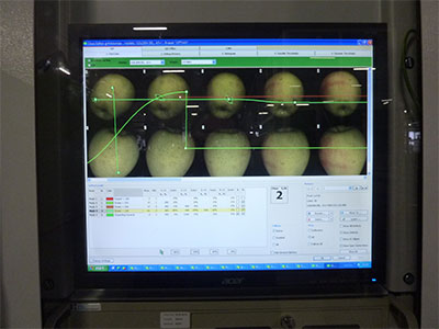 GeoSort für vorsortieren von Äpfel 10 Spuren mit 60 Ausgänge Messsysteme: Farbe, Maß, Gewicht und äußere Qualität (iQS IV) Zusatzgeräte: Unterwasserfüller, Binmatic