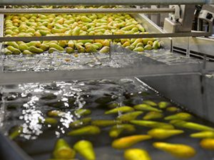 Nuestros vaciadores en agua vacían bins en un depósito de agua y los dirigen hacia la máquina clasificadora cuidadosamente. El transporte por agua minimiza el riesgo de daños. Tenemos soluciones específicas para fruta que flota y fruta que no flota. Ni que decir tiene que el tratamiento del agua es un elemento importante, y que estará incluido en su solución integral.