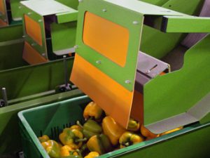 Les légumes tels que les tomates, les concombres et les poivrons peuvent être automatiquement insérés dans des boîtes ou des caisses, d’une manière très simple et très efficace, jusqu’à atteindre le poids ou le nombre désiré. Ensuite, ces boîtes ou ces caisses peuvent être déchargées manuellement ou automatiquement, selon vos préférences. Pour les concombres, nous disposons d’une solution unique brevetée pour remplir les caisses avec une grande efficacité.