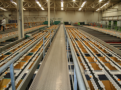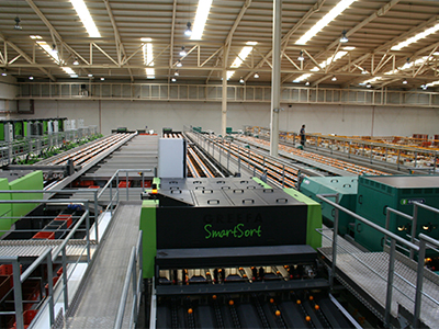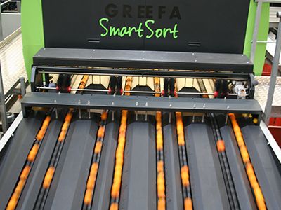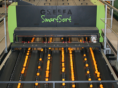 SmartSort per clementine (80%) e arance 2x 8 corsie con 2x 50 uscite (in seguito esteso a 4x 8 corsie) Sistemi di misurazione: dimensioni, peso, colore