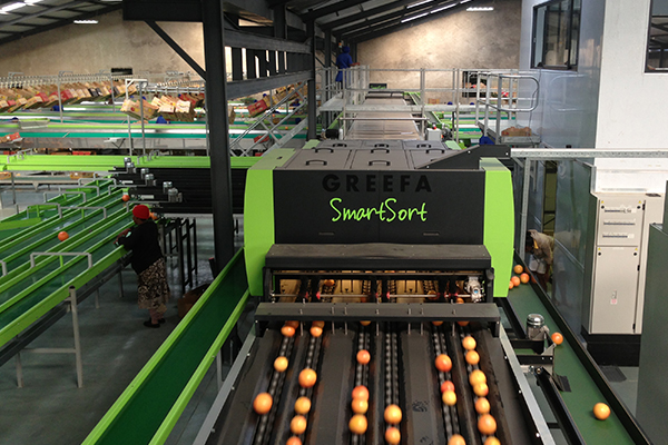 SmartSort voor het sorteren van citrus 6 sporen met 44 uitgangen Meetsystemen: maat, kleur, gewicht en externe kwaliteit (iQS)
