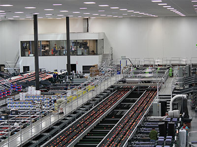 GeoSort voor het voorsorteren van appels 2 x 6 sporen met 54 uitgangen Meetsystemen: maat, kleur, gewicht, externe kwaliteit (iQS) en interne kwaliteit (iFA)