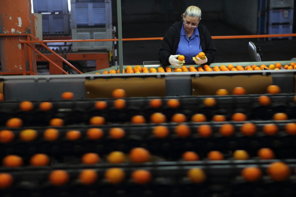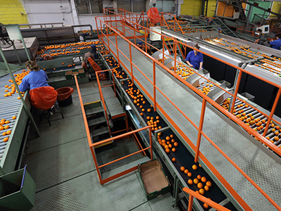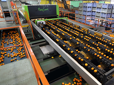 EasySort voor het sorteren van tangerines, sinaasappels, citroenen en grapefruits. 8 sporen Meetsystemen: maat, kleur, gewicht, externe kwaliteit (iQS) en externe kwaliteit met UV-licht (iPIX)