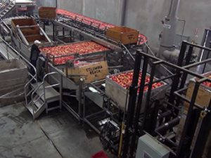 For crates there is a specific solution for continuous wet infeed: the small crate flow through dumper that ensures a continuous infeed of fruit into the water tank, combined with an efficient logistics solution for the crates.