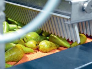 Take our drying belt for pears, for example. The product is dried using air and a sponge conveyor belt. In the drying section of the grading line, the pears remain don’t move at all. As a result there is much less chance of damage such as brushing or other damage to the skin.